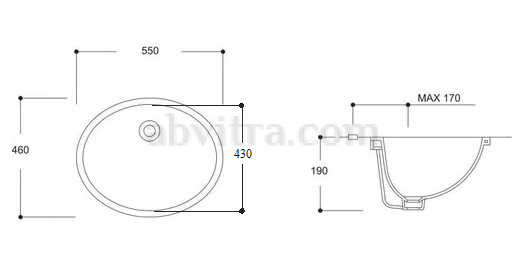 Овална мивка за вграждане под плот за баня с преливник